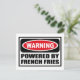Avertissement POWERED BY FRIES FRANÇAIS Carte postale vous pouvez customiser à www.WarningSignShirts.com et comporte un panneau rouge et noir d'avertissement et POWERED BY FRIES FRANÇAIS en lettres noires en gras pour avertir le monde. Vous pouvez également customiser votre propre panneau d'avertissement Carte postale avec le texte que vous voulez.