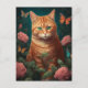 Postale Belle Chat Gingembre Avec Roses Roses Rose Carte P