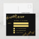Un arrière - plan noir, un texte doré. Personnalisez et ajoutez la réponse par date. Retour : Carte postale. Ajoutez votre nom et votre adresse de retour.