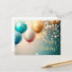 Carte de vœux festive avec ballons dorés et bleus et confettis