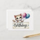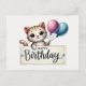 Postale Carte d'anniversaire Adorable Chat avec Ballons