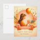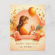 "Rendez les anniversaires inoubliables avec notre carte postale d'anniversaire élégante représentant une jeune fille tenant un gâteau sur un fond jaune-orange vibrant. Parfaite pour répandre la joie, elle est ornée du message sincère 'Joyeux Anniversaire mon ami'. Envoyez vos vœux chaleureux avec style !
