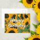 Rien n'est plus joyeux et ensoleillé que cette jolie carte d'anniversaire tournesol. La belle écriture cursive indique Joyeux Anniversaire sur un champ de jolies fleurs de soleil.