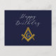 Navy Blue, Joyeux Anniversaire carte Franc-Maçon. Carte postale d'anniversaire avec équerre et compas Maçonnique. Veuillez la personnaliser avec votre propre texte ou la supprimer et écrire vos propres mots à la main.