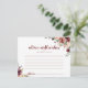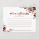 Cette carte de conseils de mariage floral d'été rustique est parfaite pour un mariage moderne. Le design présente des fleurs aquarelles bordeaux, roses et blush avec des feuilles vertes sur un fond brunâtre.
