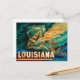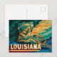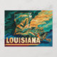 Célébrez l'esprit vibrant de Louisiane avec cette carte captivante illustration. Mélangeant des éléments abstraits et réalistes, cette oeuvre présente les paysages variés de l'État dans une riche palette de verts profonds, de jaunes dorés et de bleus riches.