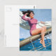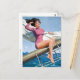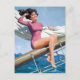Carte classique PinUp montrant une brune PinUp Girl posant sur un voilier, peinte par Arthur Sarnoff (1912-2000)