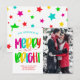 Cartes de Noël Joyeuses et Festives. Personnalisez cette carte de Noël colorée et amusante avec votre photo de famille préférée ! Cette carte photo de Noël a 5 couleurs vives et festives et des étoiles brillantes à l'arrière. Ajoutez simplement vos salutations spéciales sur le front et envoyez un courriel à votre famille et vos amis. Visitez notre site Web pour plus de photos, cartes de Noël et idées de fête de Noël—>> www.tkmpartyprintables.com