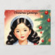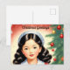 C'est une carte de Noël douce et quelque peu démodée. La jolie jeune fille près de l'arbre décoré ajoute une touche supplémentaire de douceur au thème de Noël.