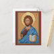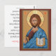 Il s'agit d'une carte postale d'une icône du Christ avec l'Évangile dans sa main qui dit : "Je suis la lumière du monde... La prière devant une icône du Christ est imprimée sur le dos.