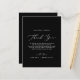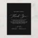 Cette délicate carte de réception en noir foncé, grâce à laquelle vous serez reçu, est parfaite pour un mariage moderne. Le design minimaliste romantique présente une belle et élégante typographie blanche sur un arrière - plan noir au look épuré et simple. Placez ces cartes à la table de chaque invité à la réception de votre mariage. Personnalisez la carte avec vos noms et un message de remerciement spécial.