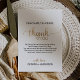 Cette simple calligraphie dorée grâce à la carte de réception est parfaite pour un mariage chic. Le design romantique classique présente une typographie de feuille d'or et un coeur doré. Placez ces cartes à la table de chaque invité à la réception de votre mariage. Personnalisez la carte avec vos noms et un message de remerciement spécial. Remarque : Ce design ne comporte pas de véritable feuille d'or. C'est un graphisme de haute qualité fait pour ressembler à du papier doré.