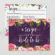 Carte de recette de Fête des mariées de Mariage Floral à aquarelle modifiable couleur chic en floraison. Avec une police de style de script de brosse tendance! ~ Modifiez facilement la couleur arrière - plan de l'aquarelle, il vous suffit de cliquer sur "Personnaliser" Faites défiler le texte et les images jusqu'à ce que vous voyiez la zone de couleur arrière - plan, et sélectionnez votre couleur personnalisée.