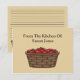 Des cartes de recettes personnalisées peuvent être utilisées pour personnaliser votre propre style de collection de recettes et de cuisines. Combiné à notre gamme toujours croissante de produits de cuisines et de recettes, mélangez et combinez pour personnaliser et créer votre propre style de livre de cuisine. Utilisez le modèle de libellé customisé pour insérer votre propre libellé. Cette carte à thème pomme présente un panier de pommes brun fraîchement cueilli. Idéal pour un cadeau de cuisine à thème de la campagne.