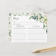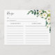Carte de recette florale vert et ivoire qui correspond à nos élégantes invitations à la douche nuptiale florale Alabaster.