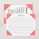 Cette jolie carte de recettes a un design rétro simple, avec des chèques de restaurant rouges et blancs. Un côté donne des équivalents de mesure de la recette pour aider la cuisson et la cuisine dans la cuisine. L'avant a des lignes pour écrire votre recette préférée et de l'espace en haut pour ajouter votre nom ou texte personnalisé. Cliquez sur Customiser pour ajouter du texte ou modifier des polices et des couleurs.