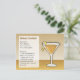 Un verre de cocktail Sidecar avec une bande de croûte de citron avec boîte de recette sur arrière - plan beige.
