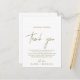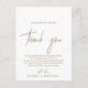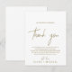 Ce carte de remerciements fantaisiste de mariage d'or est parfait pour un mariage moderne. Le design se compose d'une typographie dorée élégante mais rustique pour un look simple et minimal. Placez ces cartes à la table de chaque invité à la réception de votre mariage. Personnalisez la carte avec vos noms et un message de remerciement spécial.