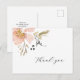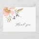 Notre carte de remerciements floral classique comprend la calligraphie fluide, des fleurs roses douces, des feuilles kaki et vert foncé avec des branches sur un arrière - plan blanc. Le dos est vide pour écrire votre propre message avec des noms en bas. Parfait pour les mariages, les mariés et les baby showers. Pour modifier ou supprimer la couleur ou le texte de l'arrière - plan au dos, cliquez sur le bouton Personnaliser.