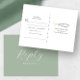 Conçue avec élégance pour s'associer à notre papeterie de mariage à l'aquarelle lavande, cette carte de réponse est l'incarnation même d'une romance botanique. Elle présente des brins minimalistes de fleurs de lavande. Cette carte postale offre judicieusement un espace dédié aux invités pour confirmer leur présence et ajouter leur demande de chanson. Le mot "Réponse" est inscrit dans une typographie script élégante sur un fond vert sauge. Idéal pour les mariages rustiques et de jardin, cette pièce est un témoignage de l'art unique de Victoria Grigaliunas de Do Tell A Belle. Découvrez la papeterie assortie et plus encore sur www.zazzle.com/dotellabelle.