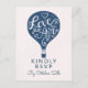 Ballon à air chaud bleu marine foncé Hand Lettered Love, avec le texte dessiné à la main Love is in the air, ballon mignon, cœurs, volutes, gribouillis et polices amusantes. La couleur de fond peut être personnalisée selon vos préférences, il suffit de cliquer sur le lien de personnalisation. Parfait pour un mariage de printemps ou d'été - Cartes de réponse de mariage personnalisées !