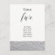 Un design noir très sobre avec une bordure en dentelle blanche en fait une carte de séjour professionnelle. Ajoutez simplement vos noms d'invités ou un message. Faites en sorte que vos invités trouvent facilement leur place. Customisez en modifiant le numéro et en ajoutant au panier, puis répétez pour chaque numéro.