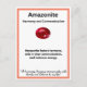 Carte de signification de la pierre cristalline d'amazonite comportant une pierre cristalline, sa signification, ses propriétés et une citation d'affirmation