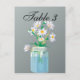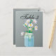Marguerites blanches dans un bocal de mason teinté bleu.