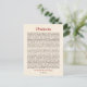 Les paroles intemporelles bien-aimées de consolation, d'encouragement et de sagesse du Desiderata de Max Ehrmann font une carte qui est à la fois significative et attrayante. Le texte est imprimé en marron foncé et rouge profond sur un fond pâle semblable à du parchemin. Envoyez-le à un ami ou exposez-le comme une mini œuvre d'art.