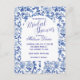 Personnalisez cette belle carte d'invitation de mariage bleu et blanc en style chinoiserie.