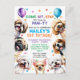 Cartes d'invitation d'anniversaire pour chien. 10 ans (ou modifier pour n'importe quel âge). Pour garçon ou fille. Illustration d'un chiot heureux et souriant entourée de confettis et de ballons, avec des races de petits chiens populaires telles que shih tzu, carlin, maltais, chihuahua, caniche et beagle. Tous les textes sont modifiables : nom de l'enfant, âge, heure de la fête, adresse et RSVP.