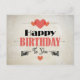 A very cool abstract Birthday greeting card - featuring the message "Happy Birthday To You", with red hearts and some steampunk-themed élément (pointing finger and arrow) - placed against a cream-colored grunge ground. A trendy birthday card that you can give to anyone on their birthday !