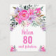 Elégante carte de 80ème anniversaire avec une aquarelle rose design floral. Personnalisez avec votre nom et votre texte.