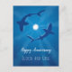 Cette Carte de voeux humoristique pour le Joyeux Anniversaire illustre le couple de requins qui entourent la profondeur de l'océan. La lune d'argent brille à travers l'eau et des couples mariés heureux dansent dans ses rayons. Cette illustration d'aquarelle est faite dans les tons bleus. Pour une épouse et un mari heureux célébrant leur anniversaire de mariage. Personnalisez Son et Ses noms dans la partie inférieure de la carte à l'aide d'outils de personnalisation Zazzle.