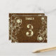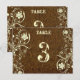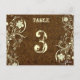 Charming table number for reception, dîner, wedding. Flat post-card. Image of tooled leather for background