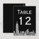 NYC Skyline Etched Look 01 Invitation Suite Black & White, Black Arrière - plan Montré : Choisissez votre Arrière - plan Couleur - Table Numéro Card ========= Élégantes, élégantes, personnalisables invitations et accessoires avec une vue iconique de la ligne d'horizon de New York, avec une photo d'apparence gravée de l'ESB et Chrysler Building et vue arrière de l'immeuble Flatiron montré arrière - plan noir. Vous pouvez choisir une couleur arrière - plan différente en cliquant sur le bouton "Customiser" et en choisissant "Arrière - plan" dans le menu déroulant Modifier. Vous pouvez également modifier les couleurs de texte en cliquant sur le ou les champs à modifier, puis en cliquant sur la zone de couleur qui apparaît au-dessus des champs. Vous pouvez également ajouter ou supprimer des champs de texte, modifier des polices, etc. 2013 ©NYCisMyMuse Tous droits réservés