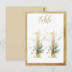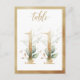 Belle carte de numéro de table avec un motif botanique - une aquarelle illustrant le feuillage verdoyant et les numéros d'effet doré. Tableau 11. Veuillez vérifier tous les numéros disponibles