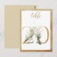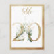 Belle carte de numéro de table avec un motif botanique - une aquarelle illustrant le feuillage verdoyant et les numéros d'effet doré. Tableau 20. Veuillez vérifier tous les numéros disponibles