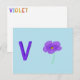 Simple, coloré, délicieux. Photo ABC créée à l'origine pour ma charmante petite-fille. V est pour violet. Utilisez cette carte ABC Zebra pour l'orthographe et pour faire des lettres sur le dos. L'image sur le devant est étalée sur le dos à l'aide de lettres colorées ABC Zebra comme guide. L'ABC complète avec des étiquettes musicales est disponible en ebook, ABC Zebra par Alex David, au Rakuten Kobo Store : https://www.kobo.com/us/en/ebook/abc-zebra et sur Apple Books : https://books.apple.com/us/book/abc-zebra/id1526639672?mt=11&app=itunes
