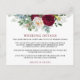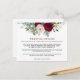 Carte d'insertion de détails de mariage élégante et moderne à l'aquarelle avec fleurs de Bourgogne et verdure, comprenant des pivoines, des feuilles d'eucalyptus et d'autres verdures magnifiques.