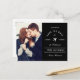 Cette élégante carte de sauvegarde de date a un look vintage et est parfaite pour un mariage de destination. Elle présente la silhouette d'un avion avec les détails de la date du mariage dans un design rétro. Une photo du couple complète cette carte élégante. Plus de détails peuvent être ajoutés au verso.