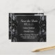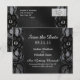 Carte de mariage 'Sauver la date' avec un design élégant noir et blanc, dentelle et satin. Design très classique et sophistiqué pour le couple qui se marie. Toutes les impressions photo.