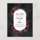 Carte de notification de mariage sombre et lunatique avec la phrase 'Jusqu'à ce que la mort nous sépare', des roses rouges foncées, des chauves-souris et des toiles d'araignée. A un fond à l'aquarelle noir fumé. La typographie blackletter ajoute à la sensation gothique de l'annonce. Voir également nos articles coordonnés.