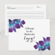 Carte de recette de douche nuptiale Dendrobium bleu violet et turquoise. Une recette wedding shower simple pour le design de la carte de fiancée qui présente une belle variété d'orchidées appelée dendrobium bleu. Il est turquoise / turquoise dans la couleur associée à violet et violet royal violet. Un grand choix de fleurs pour le thème de la douche nuptiale paon. Cette carte de recette peut être jointe à l'invitation de douche nuptiale correspondante afin que les invités wedding showers puissent remplir le dos avec leurs recettes préférées et apporter la carte avec eux à la douche comme un gardien mariage pour que la mariée soit.