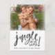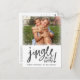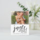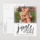 Jingle | Photo moderne Carte postale de Noël de neige - Carte vous propose votre magnifique photo et typographie à lettres manuscrites qui dit "Jingle All the Way". Le message de voeux modifiable dit "Joyeux Noël" et est personnalisé avec votre nom. Notre modèle de haute qualité vous permet de personnaliser votre carte de façon à ce qu'elle soit la vôtre. Montré en couleur mais aussi disponible en noir et blanc. La carte fait partie d'une collection. Conçu par Beverly Arena-Bainbridge Magnolia & Thistle email:bev@magnoliaandthistle.design