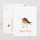 NewParkLane - Simple mais carte postale d'anniversaire, avec un petit rouge-gorge européen aquarelle mignon en différentes nuances de marron, orange et blanc, et un vœu 'Joyeux Anniversaire' en typographie élégante script en orange brûlé.