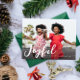 lettrage moderne joyeux avec une image de vacances en famille et texte blanc