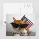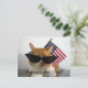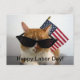 Célébrez la fête du travail avec cette carte postale cool de ma collection "Kitty Koolness", avec un chat orange et blanc aux teintes noires avec un drapeau américain derrière elle. Photo du designer.