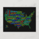 Cette carte des Etats-Unis est remplie d'un nuage de mots créé à partir des mots de la 'Constitution des Etats-Unis'. Les mots qui apparaissent plus fréquemment dans la constitution sont imprimés plus gros que les mots moins fréquents. Le nuage de mots est basé sur la transcription disponible à l'adresse http://www.archives.gov/exhibits/charters/constitution_transcript.html