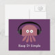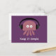 La carte postale pourpre avec des écouteurs de port de méduses roses mignonnes et originales et les mots "la maintiennent simple" si vous voulez changer la couleur d'arrière - plan cliquez sur juste dessus la "personnaliser il" bouton. Le texte est également personnalisable - un bon nombre de polices et de couleurs pour choisir de. Veuillez visiter mon magasin sobre de princesse pour les cadeaux uniques et d'amusement pour des personnes dans la récupération de l'alcool et de la toxicomanie - et des cadeaux avec messages spirituels/inspirés. Toutes les illustrations créées par un alcoolique dans la récupération.